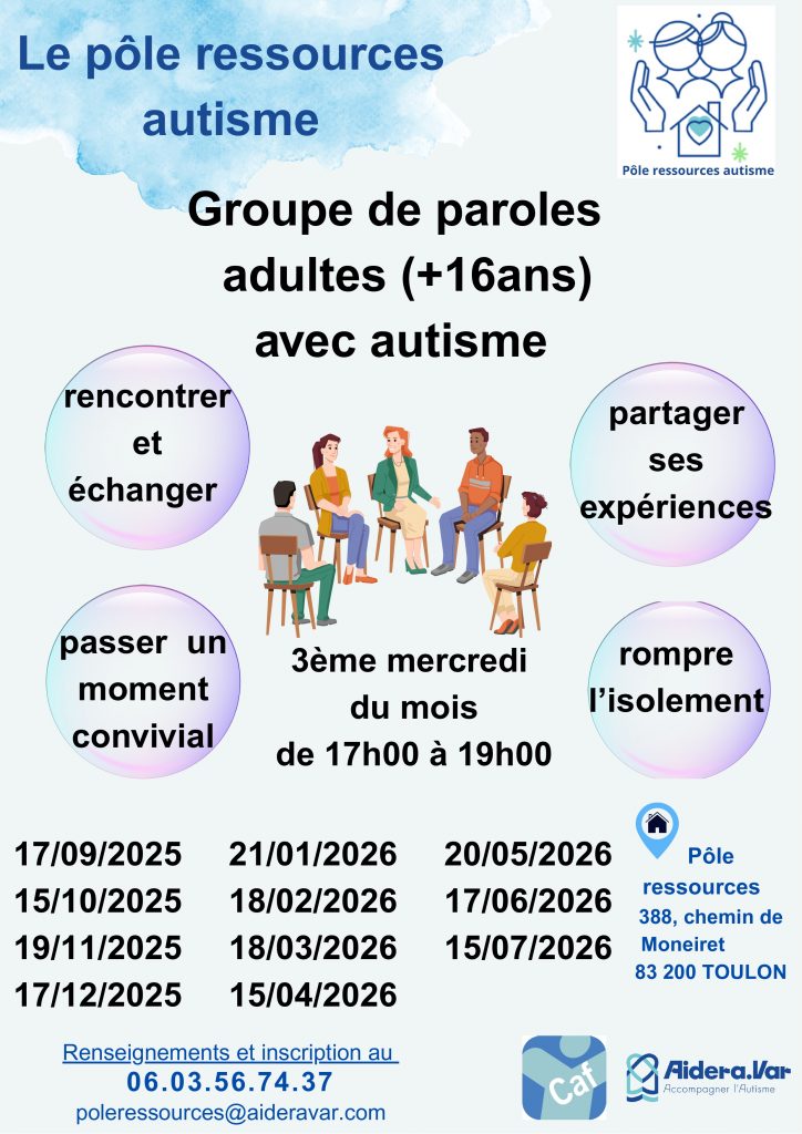 Découvrez le programme du Pôle ressources d’Aidera Var du mois de mai ! Café des parents à La Garde, Toulon et Brignoles Répit parental Randonnée adaptée et pique-nique en famille Groupe de rencontres et échanges pour les adultes avec autisme Session danse pour les parents Inscriptions obligatoires, événements gratuits. N’attendez […]